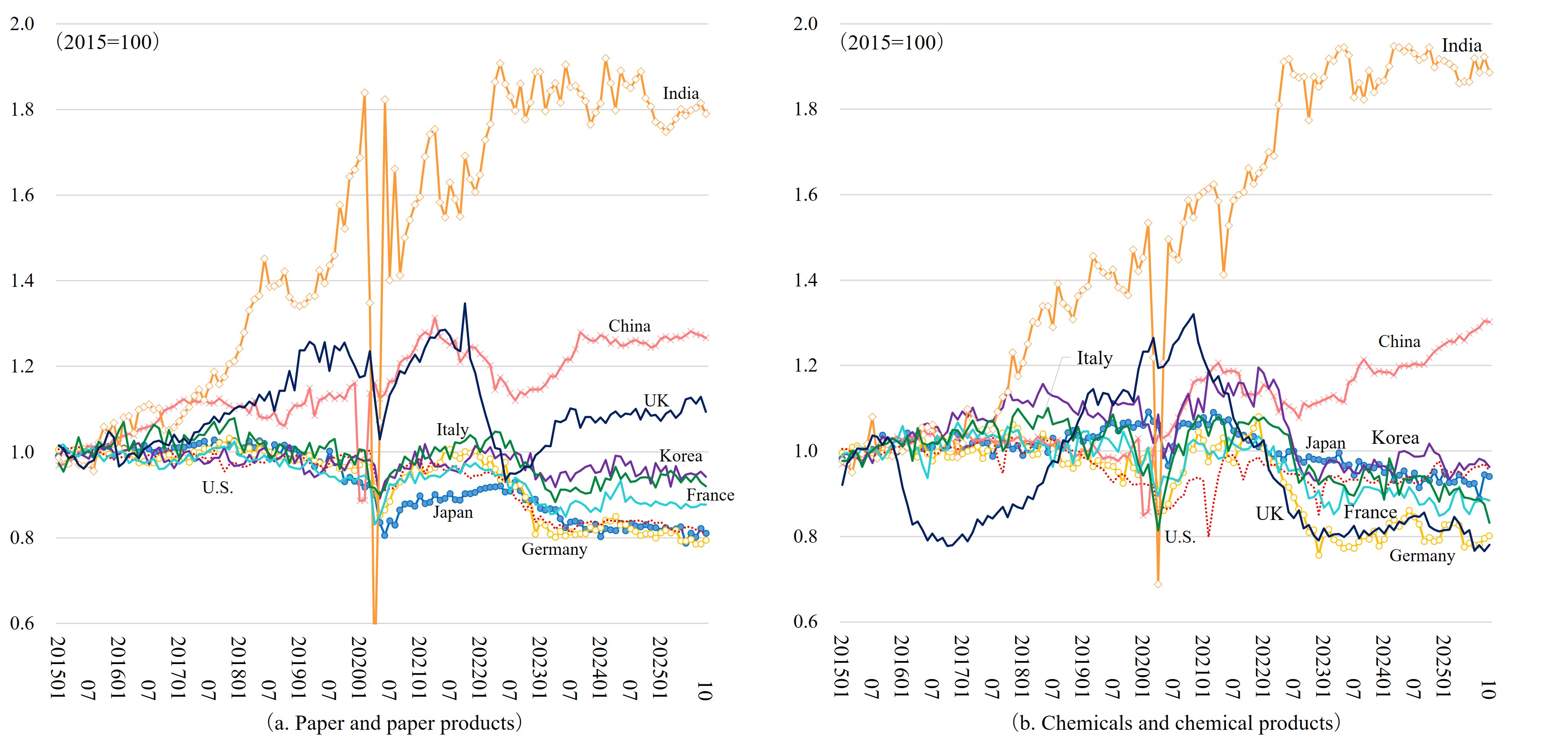 Unit: Index (output in 2015=1.0). Period: January 2015–October 2025.