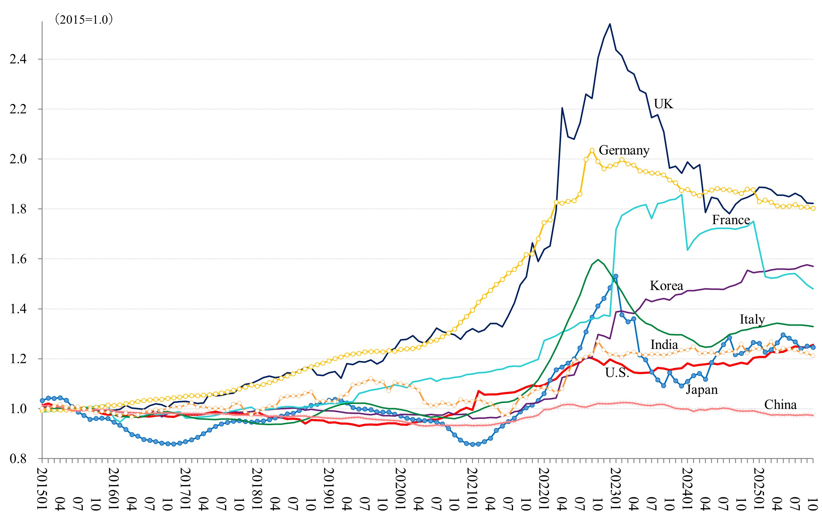 The ECM provides a high-frequency indicator — Real Unit Energy Cost (RUEC) and Real Price Level Index for energy (Real PLI) — to measure and compare real energy cost differentials across nine countries: four in Asia (China, India, Japan, and Korea),