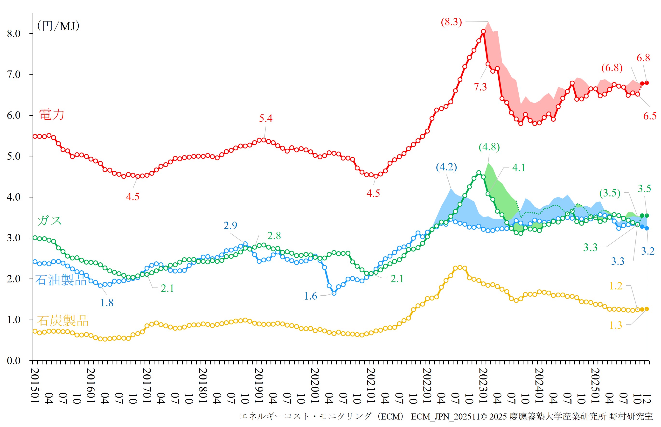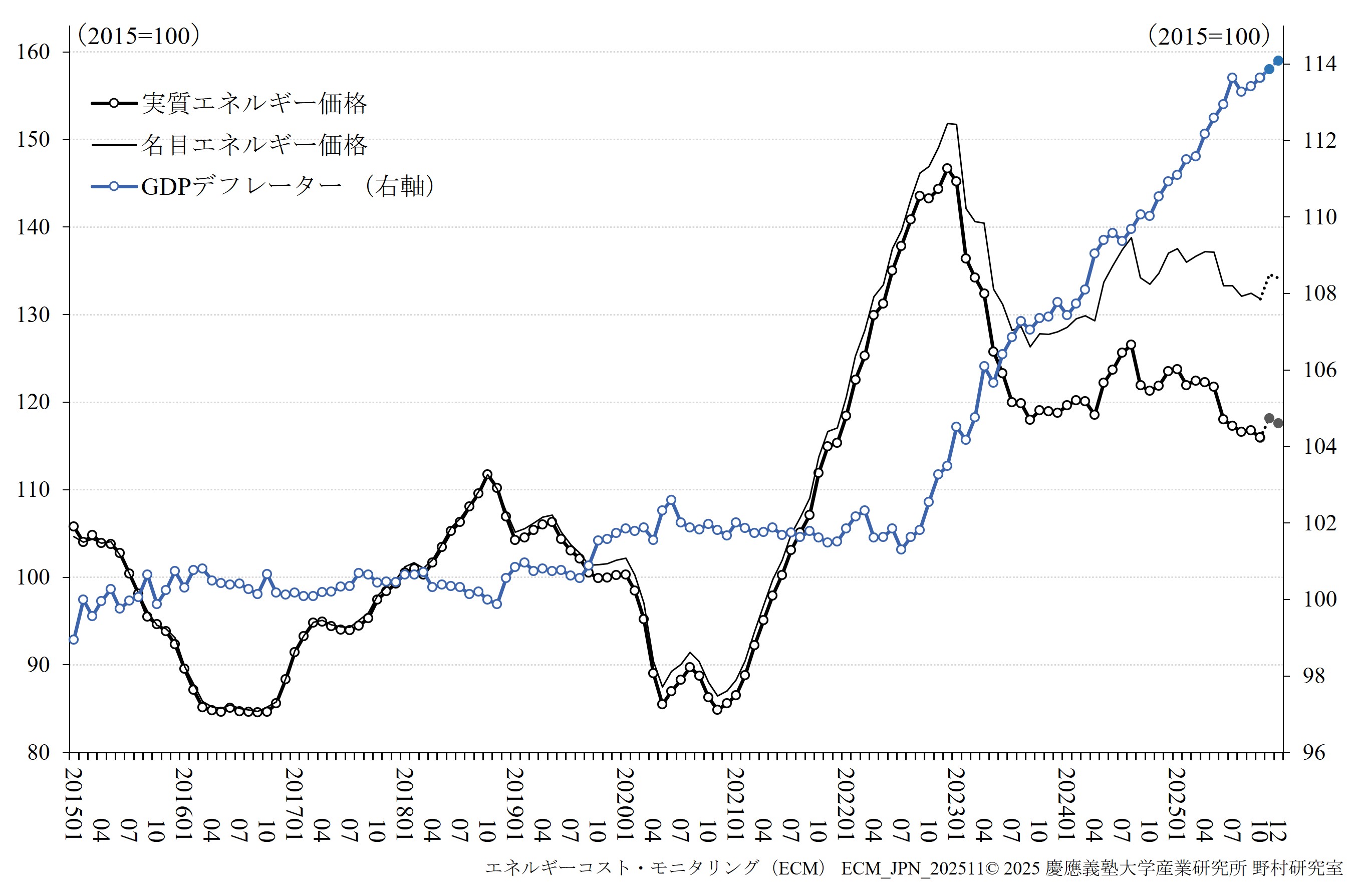 エネルギー構成の差を考慮して推計された集計エネルギー価格